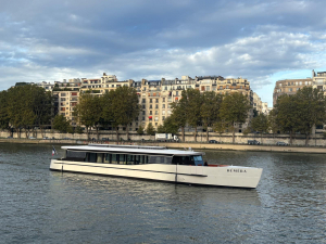 2022-2023 – Côté Seine Port des Invalides à Paris 7ème – Bâtiment flottant de 40 m x 9 m accueillant le restaurant «Riviera Fuga»